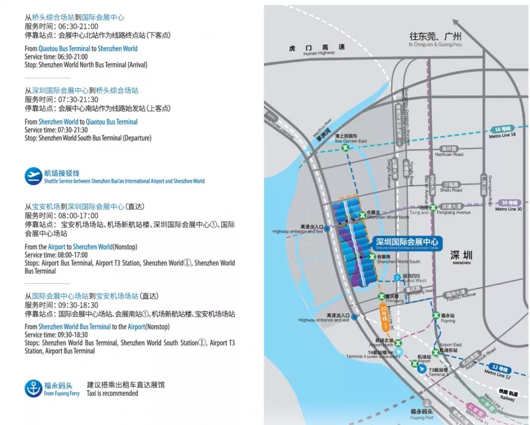 从位置上来看,深圳国际会展中心紧邻深圳宝安国际机场,毗邻福永码头,紧挨广深沿江高速,直通地铁,接驳城轨,交通便利。从新闻中获悉,深圳国际会展中心建设的同时,周边交通、水利、商业配套等工程同步建设。目前轨道交通方面,地铁12号线、20号线在会展中心分别设有会展南站、会展北站;在快速路衔接方面,沿江高速国展立交已建成,便捷抵达深圳国际会展中心;同时周边12条新建道路,2条改扩建道路及8座跨河桥梁组成的周边路网也已基本形成,为市民参观展览营造了良好交通配套环境。