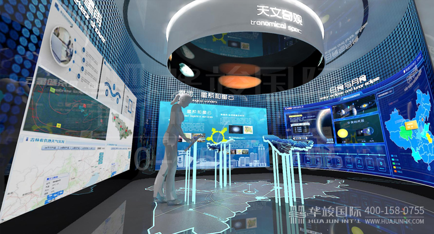 该馆以“感知宇宙”“认知宇宙”“探索宇宙”为主题,50余个展项利用互动投影、悬浮投影、物体跟踪、人体捕捉、体感互动、VR等高科技手段展示藏地的神奇,揭示宇宙的奥秘。这些现代化的技术,华竣国际都轻车熟路地运用在我们打造过的众多案例中。