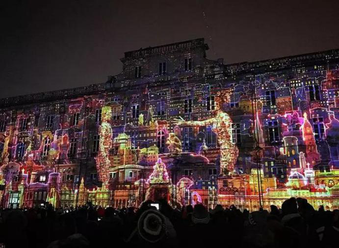 坐落于莫斯科城市中心的综合技术博物馆,首次参加灯光节。观众们可以通过建筑物上的投影秀了解到这座古老博物馆的历史和未来。 时代的发展让原本古老、传统的博物馆的形态发生了遽变,华竣国际也致力于为博物馆建设赋予新的意义——无论是内容设计,还是现代科技的引入。