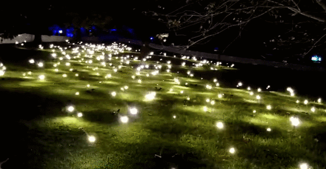 悉尼皇家植物园变成萤火光场秀,由500个可自动移动和闪烁的飞行光点组成,模拟出在夜空中飞舞的萤火虫装置,让游客沉浸在光与自然相交辉映的艺术作品中。