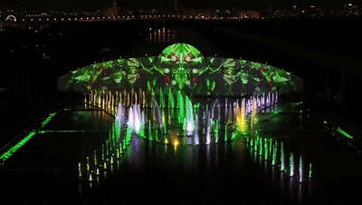 剧院广场上,大剧院、小剧院和青年剧院的正面会连接成三面环抱式大型全景屏幕,为观众带来全方位的沉浸式体验。