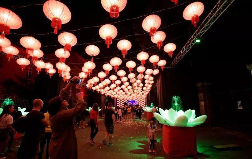 波兰托伦当代艺术中心在去年举办了“荆风楚韵,璀璨中华”——纪念中国改革开放四十周年图片展,今年的灯光节上也出现了不少中国元素,如红灯笼、莲花等。
