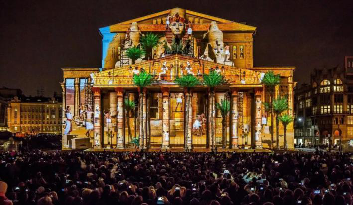 莫斯科“光之环”国际灯光节 创办于2011年,是国际十大投影灯光节之一,曾在2015年创下“世界最大投影画面”的吉尼斯纪录。